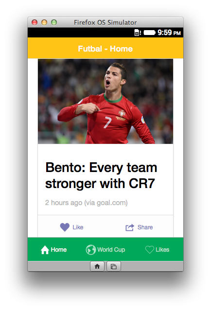 Futbal is a modern football app that makes it easy to see all the latest news and stats to the major leagues. Futbal displays it's information in a feed-like manner, which makes it incredibly easy to see everything at a glance. You can also favorite certain posts to get back to them at a later stage or share them with your friends. Futbal has the possibility to favorite teams, for example for the upcoming World Cup 2014 you can favorite the national team you're supporting and see all the upcoming matches + more.