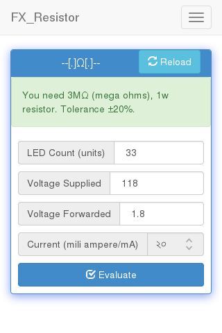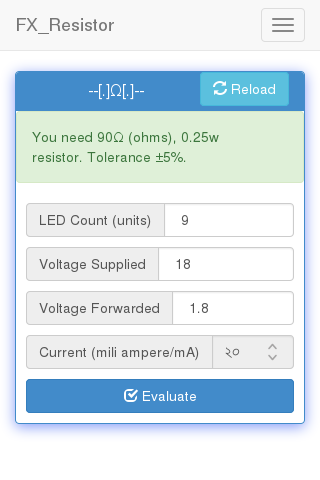 FX_Resistor is an app to calculate registor value usable on a series led cricuit.