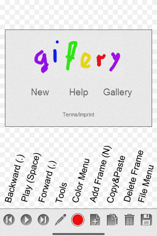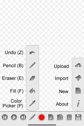 a webapp to draw and edit animated gifs - draw in true color with transparency and variable brush size - works on mobile devices (tested on iPad and iPhone) - upload your gif to imgur and tumblr - import existing gifs to edit or view frame by frame - auto-save in case you want to continue editing later - fill shapes - pick colors - undo - onion skin (to see the frame before and after) - copy and paste frames - hotkeys (b, e, f, i, z, space, ",", ".")