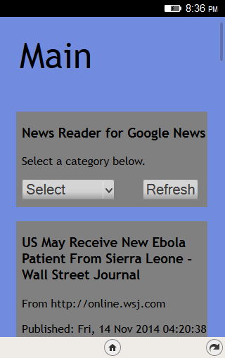 An open source news reader for Google News. Browse and read articles across several categories. Also available for Windows 8.