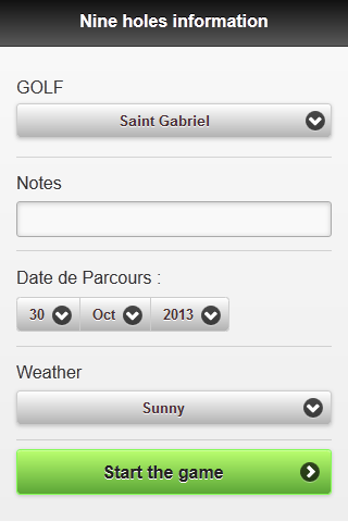 Golf SC is a free (as GPLv2 ) application that helps you note your score during your golf courses (StrokePlay). You add new point (+1, +2, …) the places where you take your stance and when you finished your courses, the application store your score and can send you with the position of each mark. The notation is easy and very very quick. The application is limited to 9 holes courses and the report is today only with text mail. Html score card version and geolocalization are stored in the SDCARD (you could add manually to the generated email, if you want). Today the database is limited to some courses from the West South of France, but you can add your favorite golf courses for future version by downloading this excel file and send with your favorite's golf information to [email protected]. The courses will be added in the future version. The application has four languages available, you could propose a new language or correct the previous one, by downloading this excel file and send with the new messages to [email protected]. Future version will support 18 holes courses and other, more golf in the database and more language with your support too. If you discover a bug, please report to the bug tracker You could request new feature in this request page A small video tutorial is available on this link