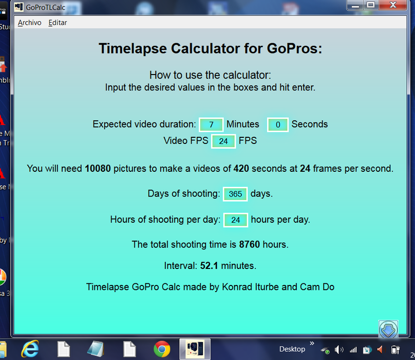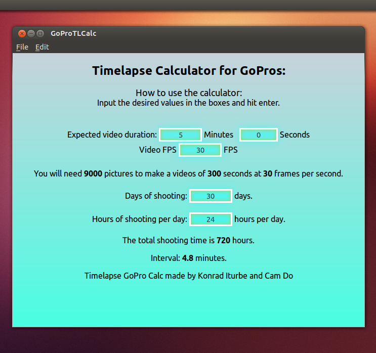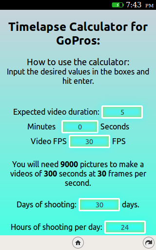 Calculate the timelapse interval and other parameters of your gopro timelapse with this app
