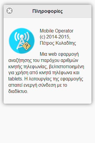Αναζήτηση του παρόχου δικτύου για ελληνικούς αριθμούς κινητής τηλεφωνίας, βελτιστοποιημένη για χρήση από κινητά τηλέφωνα και tablets.
