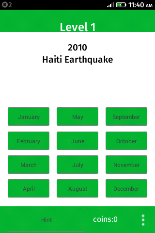 Guess when famous events in recent history took place. Play through dozens of levels on 2010, 2011 and 2012. Levels on 2013 will be available at the start of the new year!