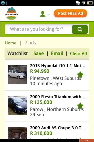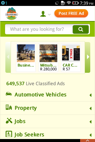 South Africa Free Classifieds, For Sale - Travel - Tourism, Real Estate, Jobs, Classes - Workshops, Vehicles, Services Gumtree Gumtree South Africa is South Africa’s leading free, local classifieds website. Gumtree South Africa offers a convenient, fun, and easy way for people to buy and sell goods and cars, find jobs, housing, pets, and more. Gumtree is now available in the Firefox market as Gumtree South Africa! The Gumtree South Africa application for Firefox is specially designed to run on the Firefox operating system. Gumtree users in South Africa can now search local classifieds ads, reply to listings, and post ads with just a few simple taps while on the go. And, it’s completely free. FEATURES: - Find ads near you - Edit and manage your ads - View full ad descriptions with high-resolution photos - Contact posters from within the app - Refine search in search result - Post an ad with pictures from your smartphone or take new pictures - Track ads on your watch list - Share ads via SMS (as well as Facebook, Twitter, and Email)