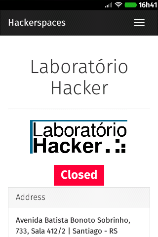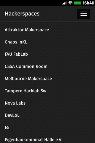 This app show the status and informations of many hackerspaces in the world with SpaceAPI service. This app is under GPL3 license. Source code in https://github.com/samuelmoraesf/hackerspaces-app