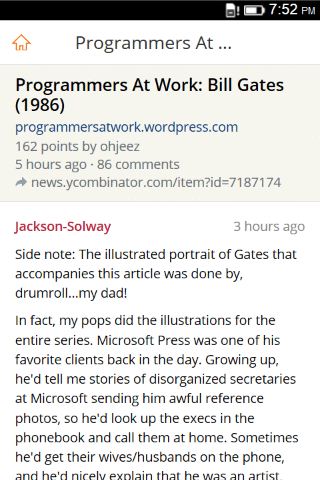 A simply readable Hacker News web app. A simple reader web client for YCombinator's Hacker News site (news.ycombinator.com). Specially designed to have a better layout for browsing stories and reading comments. Homepage: http://hackerwebapp.com/ GitHub repo: http://github.com/cheeaun/hackerweb