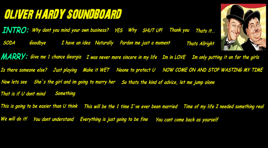Oliver Hardy and Laurel classic sound app board with phrases like come on. Html5 web app audio