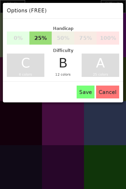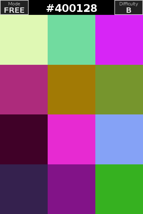 What color is it ? Select the same color than the hexadecimal value. You can play two modes : RANK (try to obtain the highest rank !) or FREE (choose the difficulty you want).