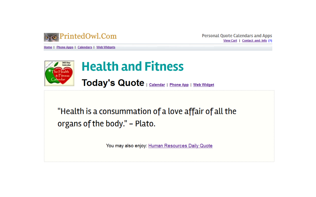 Health and fitness facts, terms, tips, information, websites, and knowledge in a calendar. Each day of the calendar year contains an interesting reference devoted to make you healthier, more fit, and more happy. Practical, informative, and motivating.