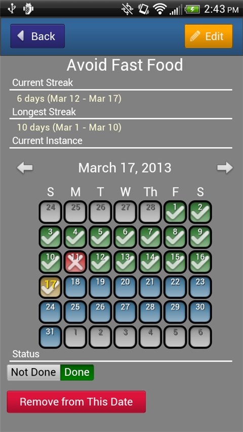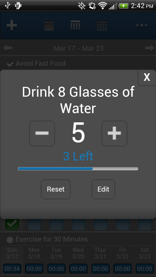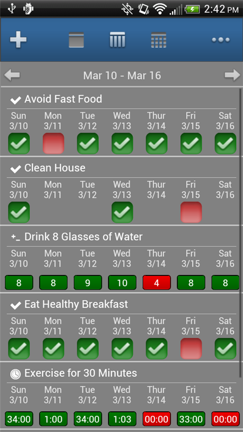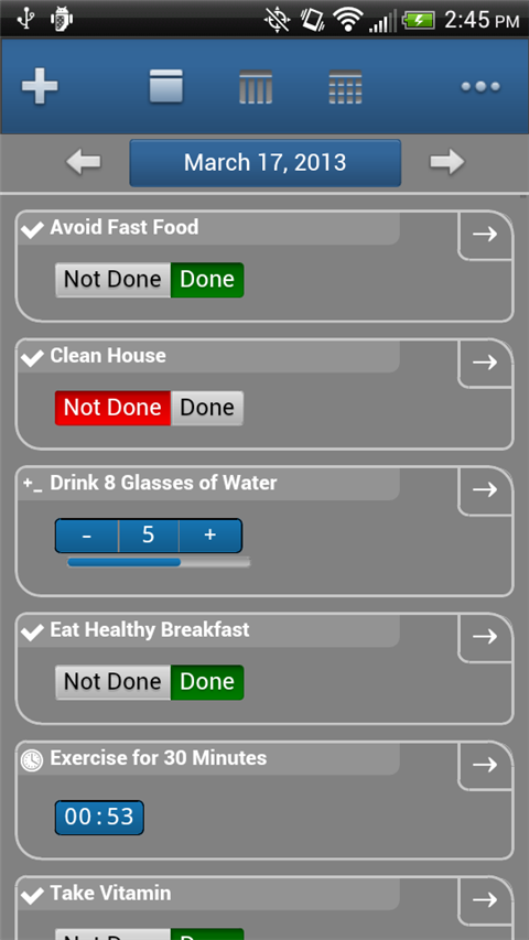 A simple and easy way to keep track of your habits. Whether your goal is to lose weight, eat better, or simply live better, Healthy Habit Tracker can help you keep track of your daily habits and achieve your goals. With Healthy Habit Tracker, you can view your progress in daily, weekly, or monthly views, and keep track of your streaks by habit or overall. There are four types of habits available: a simple “checkoff” style, a timed style, a counter style, and a number input style. You can set these habits to repeat daily, or select which days of the week they occur. An extensive list of example habits is also included for those that need ideas and motivation. Healthy Habit Tracker also comes with a free online account so you can sync your information across multiple devices. Also featured is a wide selection of themes as well as a custom theme editor to personalize the app to your liking.