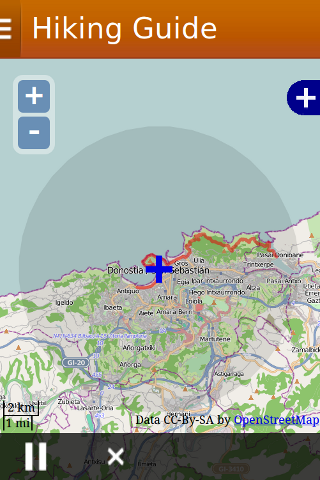A guide that will help you in your hikes with maps, tracks and GPS position. Hiking Guide is a web app written in HTML, Javascript and CSS, and has been tested on Firefox. It can show: - Maps: If online, it shows maps from OpenStreetMap. And if not on a Firefox OS phone (security constraints do not allow to load external Javascript), it also shows Google Maps (physical, streets, hybrid and satellite). - Tracks: It can show a downloaded track and its distance. It works with GPX and KML tracks. On a Firefox OS phone, tracks must be located in a directory called "tracks" in the SD card. - Position: If GPS is connected, it shows the current position and the path and distance made. Hiking Guide uses the OpenLayers (http://www.openlayers.org/), Enyo (http://enyojs.com/), OpenStreetMap (http://www.openstreetmap.org) and Google Maps (http://maps.google.com) libraries. Thanks to Willy Roa (http://bad3di.blogspot.com) for the icon! Hiking Guide has so far been translated to Basque, English, Spanish and French. Hiking Guide can be run directly using Firefox on any platform from Github (http://e-gor.github.io/HikingGuide). On a Firefox OS phone it has to be installed (otherwise the geolocation and SD-card APIs cannot be used). The installation can be done from the Firefox Marketplace (https://marketplace.firefox.com/app/hiking-guide). The Github address redirects there if on a Firefox OS phone. The source code of Hiking Guide is hosted on Github (https://github.com/e-gor/HikingGuide). Please feel free to collaborate.