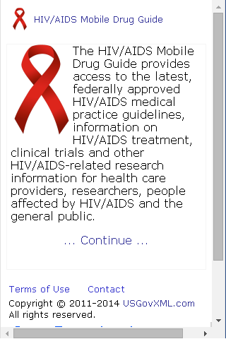 The HIV/AIDS Mobile Drug Guide provides access to the latest, federally approved HIV/AIDS medical practice guidelines, information on HIV/AIDS treatment, clinical trials and other HIV/AIDS-related research information for health care providers, researchers, people affected by HIV/AIDS and the general public.