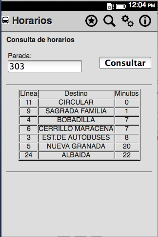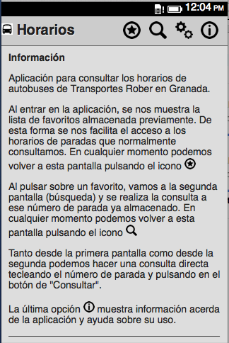 Aplicación para consultar los horarios de autobuses de Transportes Rober en Granada