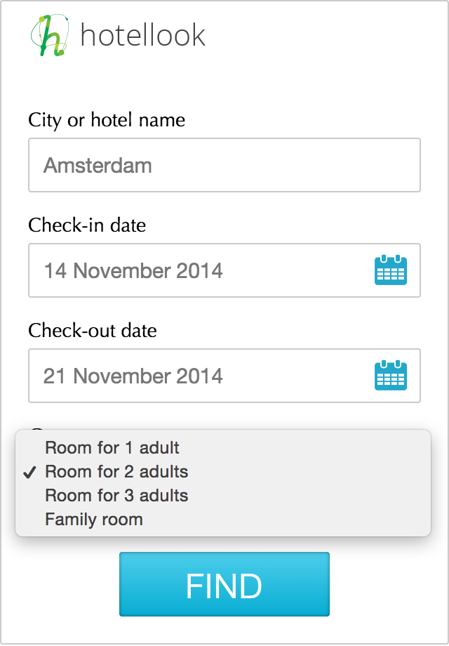 Hotellook is a widget for hotel price comparison search engine - we search for the best accomodation prices across 30+ booking websites at once.