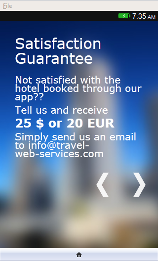 Book your Hotel through your favorite Portal like booking com and Expedia with our satisfaction Guarantee. What do you get? Money back if not satisfied. Not the entire amount, but more than a consolation prize. If, your hotel turns out to be a disappointment you will receive reimbursement of minimum 20 EUR or $20. How does it work? It's actually pretty simple. For every booking that is generated through our app we receive 2-3% commission from each Hotel Portal. That may not sound like very much per booking, but the key is in the quantity of bookings and that sure adds up fast :-) We combine all the money in one collective pot, which we use to pay your reimbursement. It's similar to Insurance with one small but very important difference, that no one needs to make a deposit. One email to us is all it takes! Info Even though all Portals want you to believe they charge you no Facilitator fee....They still do so! In the end the Hotel has to pay 10-25% to the Facilitator. Our savvy common sense already tells us that Portals have to survive and profit from something!