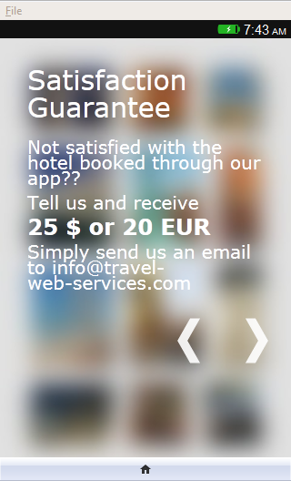 Book your Hotel through your favorite Portal like booking .com and Expedia with our satisfaction Guarantee. What do you get? Money back if not satisfied. Not the entire amount, but more than a consolation prize. If, your hotel turns out to be a disappointment you will receive reimbursement of minimum 20 EUR or $20. How does it work? It's actually pretty simple. For every booking that is generated through our app we receive 2-3% commission from each Hotel Portal. That may not sound like very much per booking, but the key is in the quantity of bookings and that sure adds up fast :-) We combine all the money in one collective pot, which we use to pay your reimbursement. It's similar to Insurance with one small but very important difference, that no one needs to make a deposit. One email to us is all it takes! Info Even though all Portals want you to believe they charge you no Facilitator fee....They still do so! In the end the Hotel has to pay 10-25% to the Facilitator. Our savvy common sense already tells us that Portals have to survive and profit from something!