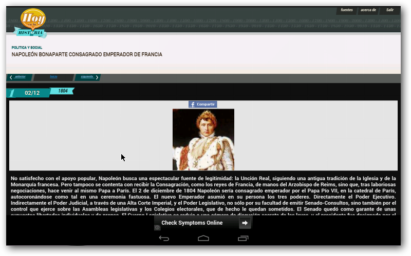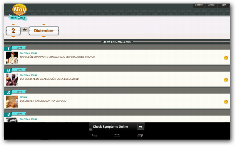 Esta aplicación te muestra los hechos históricos importantes que ocurrieron un día como hoy en el mundo, agrupados en diferentes categorías como política, ciencia, deportes, música, tecnología, religión, farándula.