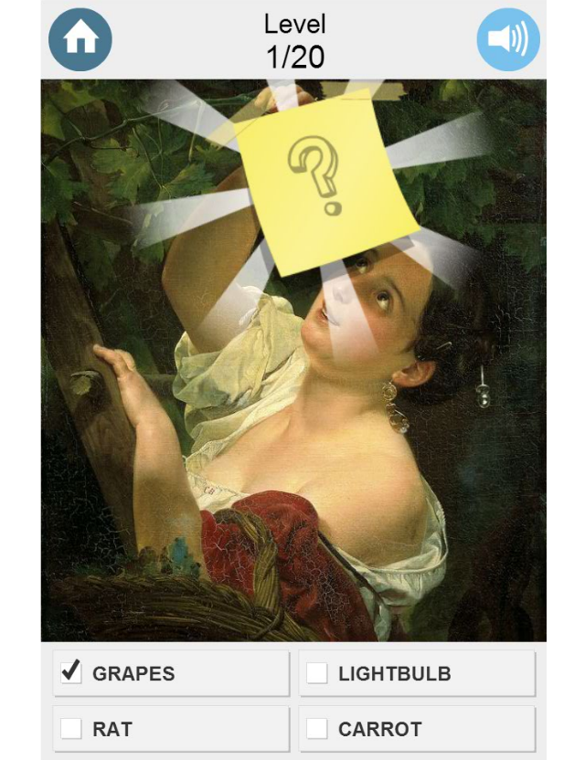 How well do you know art? Take this short, sweet quiz and find out! Guess what is under the sticky note on the painting. Is it fruit, an animal, a building, a UFO...Is it something you never noticed before? Featuring 20 world-famous masterpieces, this game is educational, entertaining, and fun!
