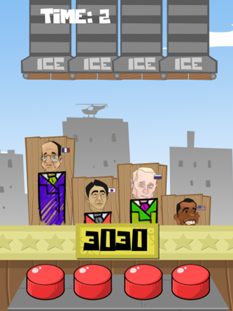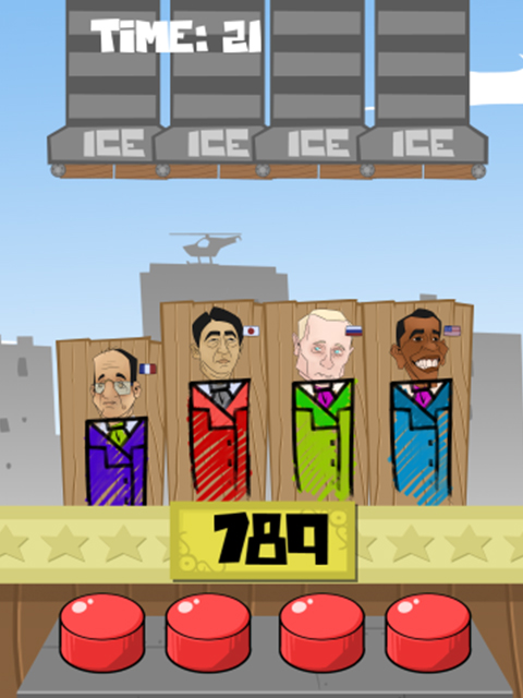 The ice bucket challenge, the new buzz on the web! After the celebrities, here come the presidents! Throw buckets of ice on the presidents's heads ! Be careful, there is a character that should never receive ice ... an hilarious pink bunny! Observe, and tap the bucket as fast as possible. Ice Bucket Challenge President Edition is a game where you can test your reflexes. Press the buttons at the right time and throw water on the presidents. Do you recognize all the presidents? All the famous presidents are present: Barrack Obamo, Francois Bollande, Vladimir Potine, Angela Merkol, Shinzo Abba, Xi Jumping, David Cameraman ... and a very special guest: a pink rabbit, completely crazy! HOW TO PLAY? Once a character appears, press the button to throw the icy water. The appearance of the characters will go faster with time. FEATURES - Ice Bucket Challenge - Survival Mode - Ice cubes - Water - Buckets - 7 presidents (including one woman) + 1 rabbit