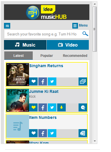 Discover Music across songs and videos on Idea MusicHUB. Idea MusicHUB is the ultimate music service which gives access to unlimited downloads and streaming across Bollywood, International, Devotional and various languages. This experience will forever change the way you listen to music on your android device ~ Get unlimited music streaming and downloads ~ Download and stream full track music and videos without advertisements . ~ Access song lyrics for various audio tracks. ~ Discover music based on your preferences mood, tempo, language, genre or era. * This service is only available for Idea Cellular subscribers in India.