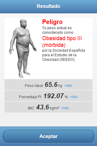 - Categorización de tu peso actual segun los parametros definidos por la SEEDO