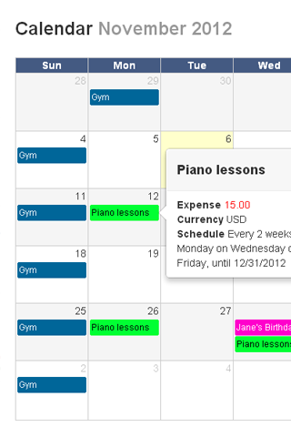 - schedule transactions in events calendar that can be synced with Google Calendar