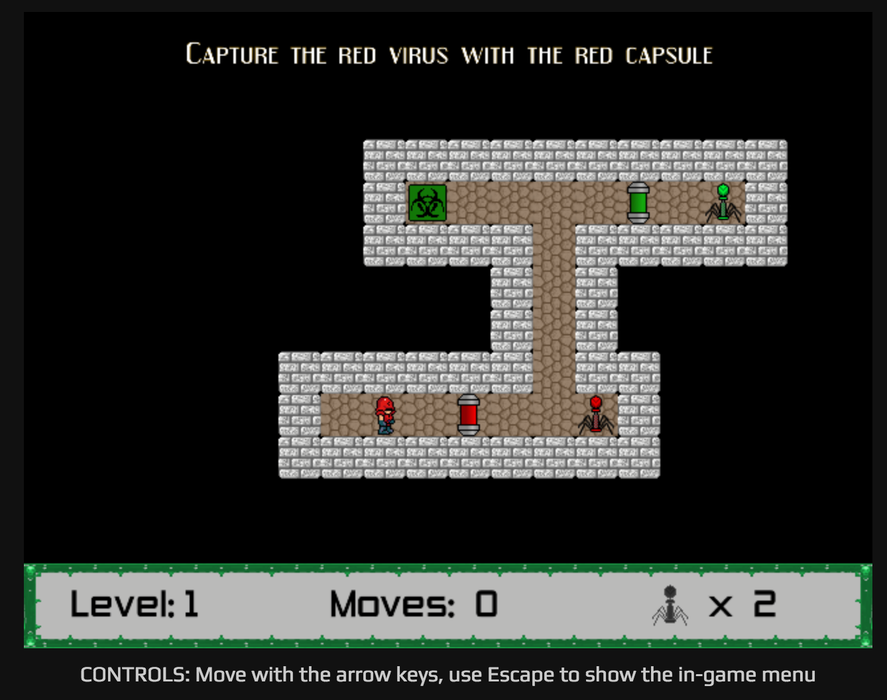 Infectors is a sokoban-like game where you have to solve puzzles pushing cryogenic capsules toward viruses to capture them and save the earth from the invasion. At the moment the game count with 21 levels.