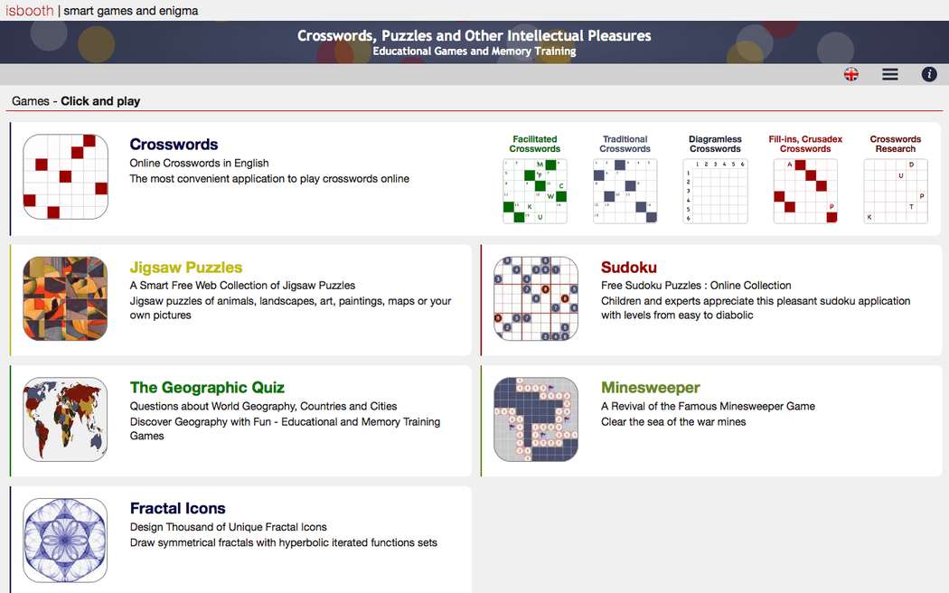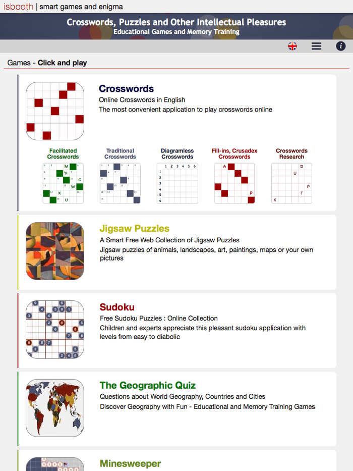 Have isBooth Free Elegant Games at your Fingertips - Play Crosswords, Sudoku and Puzzles online - Educational Games and Memory Training - The Most Convenient Application to Play Crosswords and Puzzles Online