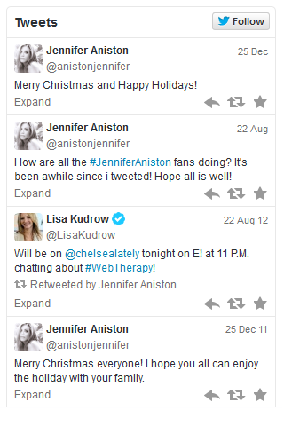 Tweets by Jennifer Aniston.