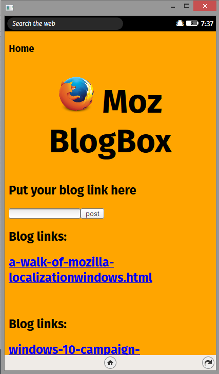 This app is designed for utility of students related to mozilla community of Jnct Bhopal ,It will give them a unique identity so every new member can join us and get info about the Moz community,this will provide also a plateform where one can know their contributions towards Mozilla. >It includes all the profiles of Moz members of Jnct ,facility to put their blog links if they do,one can read the blogs by just clicking on links provided,and new blogs can be posted by sign in to its own profile. This includes the sign up feature ,if you wanna join as a new member and can feel the glory of Moz communtiy , where we talk about innovations for the world .