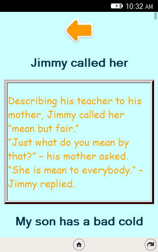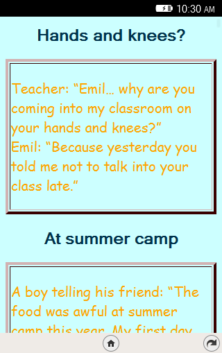 Read funny jokes on your phone! This app is a collection of great jokes for your entire family. # Family Jokes. # Life Jokes. # Teacher Jokes. # Short and Funny Jokes. # Work Jokes. # Hilarious Jokes. # Kids Jokes. # Funny Jokes. Try it now and you'll see how funny it is.