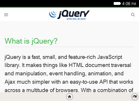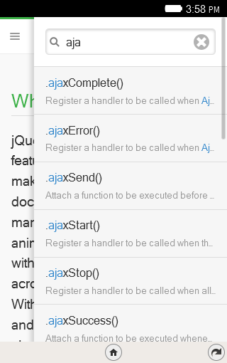 jQueryApi is an offline jQuery API Documentation application, which once downloaded can be used without internet connection. JQuery is the best framework of javascript till date. It is mandatory for each and every web developer to keep in touch with it. So this application can be in handy whenever one needs it. This application is easy to use one with quick accessibility. A function can be easily searched and its content can be effectively retrieved. The index has a tree like structure making the search more easier. Requires Firefox OS = 1.3 and up Try our Android version