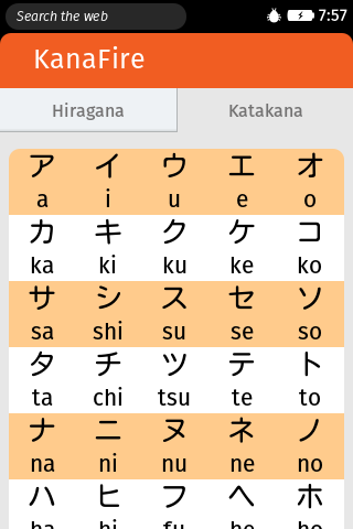 KanaFire is a very useful application for learning Japanese characters (Hiragana/Katakana). Version 1.5: -New UI -Optimization CONTACT: Twitter: @sowilo22 Mail: [email protected] Paypal: [email protected] DONATION: If you like this app and want to support me for working on it, I am thankful for every donation, my Paypal: [email protected] keywords: japan, japon, language, learn, hiragana, katakana, kanji, kana