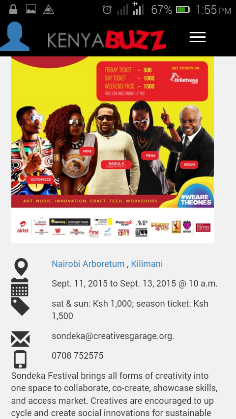 Find out what's on in Kenya. KenyaBuzz is your ultimate guide to events, restaurants, bars, cinemas, travel, culture, nightlife and things to do in Kenya.