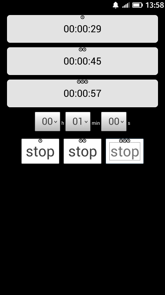 Need a reminder of your eggs' cooking time ? Set a time, and when this time is elapsed your phone will vibrate, thus helping you not to burn what you are cooking. It's a first draft. In the next version, it will be possible to choose between making the phone vibrate of playing a sound at the end of the timer.