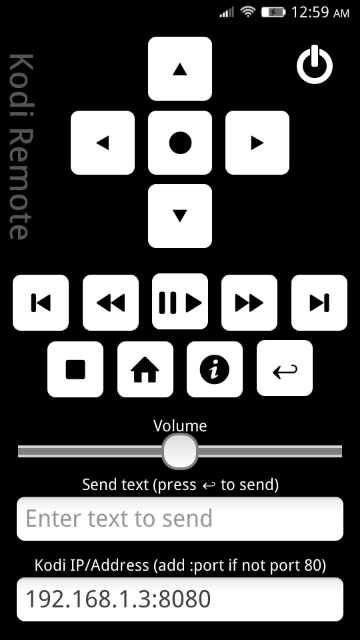 A simple to use remote control for Kodi (or XBMC). To setup the connection to you Kodi application, simply enter the IP (or address) and port that your Kodi application is listning to in the field "Kodi IP/Address". Ex. 192.168.1.10:8080 Source code at https://github.com/tirithen/kodi-remote , feel free to create pull requests. :)