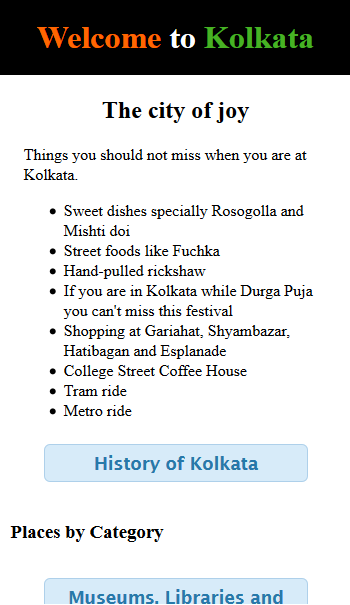 Kolkata guide app is designed to work as a guide, it contains information about important places people should visit when they are in Kolkata. This app does not store any information about the user and does not violate any privacy policy. #firefoxstudents