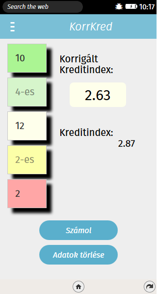Helps to count semester's result. Féléves korrigált kreditindex kiszámolása.