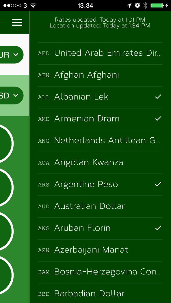 Location aware currency converter. Will use GPS to automatically detect the country you're in and the appropriate currency. Works offline for when you are traveling without internet.