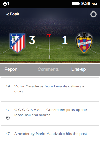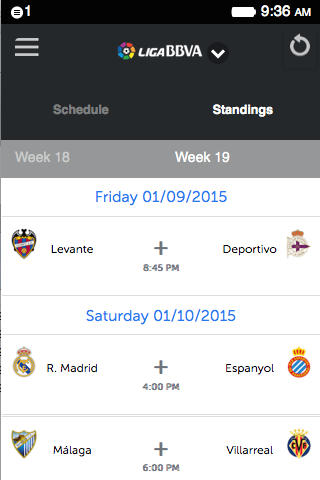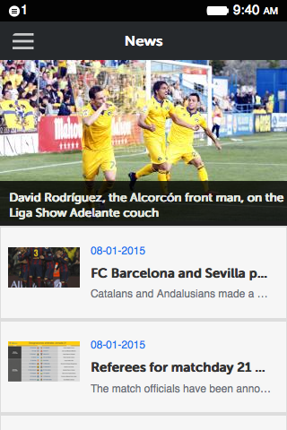 Aplicación oficial de la Liga de Fútbol Profesional para la temporada 2015-2016 En la que puedes seguir toda la actualidad de los equipos españoles, minuto a minuto, GRATIS. - HORARIOS, RESULTADOS, CLASIFICACIÓN. - de la LIGA BBVA, LIGA ADELANTE, COPA DEL REY, CHAMPIONS LEAGUE y EUROPA LEAGUE. - Comentarios EN VIVO, minuto a minuto. - GOLES 3D: reproducción en 3 dimensiones de los goles de la jornada, minutos después de producirse el gol. - NOTICIAS: últimas noticias de los equipos españoles, de tu equipo favorito y comunicados oficiales de la LFP. - Además podrás acceder de forma sencilla a los perfiles oficiales de la LFP en Facebook, Twitter, Instagram, Youtube y otras APPs oficiales de la Liga. Descárgala ahora de forma gratuita. Más información en: www.laliga.es www.facebook.com/lfpoficial www.twitter.com/laliga www.instagram.com/ligafutbolprofesional