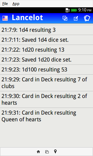 A very customizable dice roller (for RPG or just for random numbers). It includes: * Customizable dice sets (1d10, 3d6, 7d253 or every thing you want); * Manual dice roll (without save, you can just run a set); * A simple name generator; * Draw of card, suit, month and week day. * Now in two languages and fully offline.