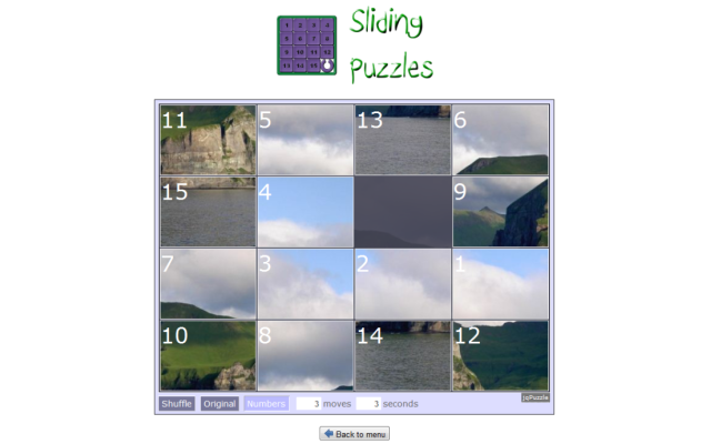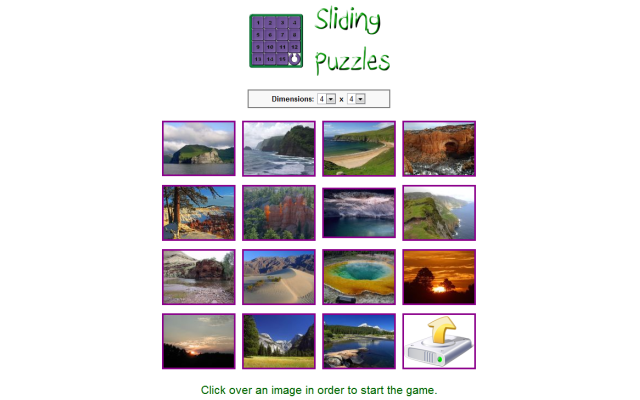 The classic sliding puzzle game. Play using a selection of beautiful landscapes or using images from your computer. Change the difficulty by selecting the number of rows and columns in which the image must be divided.
