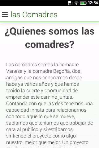 Esta es la App de la frutería Las Comadres de Sevilla. Las Comadres, fruta y verdura de la huerta, ecológica y convencional. Productos portugueses, panes artesanos, huevos de campo... Contamos con una biblioteca y un espacio donde organizamos, talleres de cocina, presentaciones e libros y revistas, y diferentes actos. Mantente al día con esta App. Esperamos que os guste.