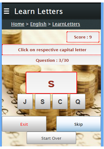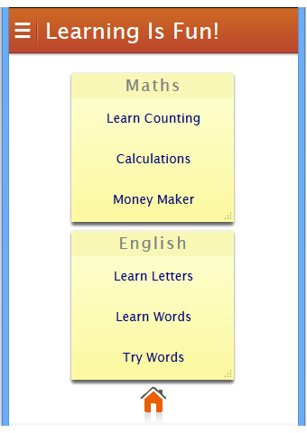"An App to educate kids in simple way by means of varied games". It helps in learning basic knowledge about various subjects like Maths, English etc. All the activities & exercises are designed in such a way that learning becomes fun for the kids. Since kids learn more by visualizing stuffs, the exercises are using lots of images to relate education with real world entities so that kinds don't find education difficulty. Currently two subjects are covered in this app, Maths & English, with three games for each. Games for Maths are LearnCounting, LearnCalculations & MoneyMaker, and Games for English are LearnLetters, LearnWords & WordTest. These games provides step by step knowledge of the subjects. First two games works on fundamentals of the subject and the final one provides some sort of test to analyze the understanding gained from previous practices. This is an offline app. Just download it once and play anytime. Help section has been provided for clarifying any doubts about the app. Those who do not have Firefox OS device can visit http://spider.nitt.edu/~ram/fxos to enjoy the game. Kindly provide your Reviews & Ratings below.