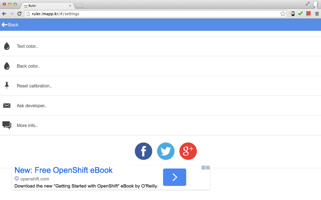 Possibly, the two most frequently used scale in our daily life, ruler and leveler are integrated. - Pitch of ruler should be calibrated with real ruler before use and ALWAYS RECOMMENDED. You can take out calibration tool by button on the left side. Ruler's pitch will move to the left or right by pressing arrow buttons. Measure with actual ruler until it is right and shrink tool by pressing button again. - Multi touch support in ruler.(condition apply) You can move two guide lines at once by multi touch the screen with two fingers. - Show level of leveler in degree or graph.(in some systems) - Inch and metric supported. - Ruler's text and background color can be changed. - tap to hold while measuring level - beep when level reached - calibrate level sensor If sensor doesn't work well even calibrated, try to draw large 8 in the air a few times, that would calibrate sensor to the environment. This is needed because the application uses magnetic sensor in the device.