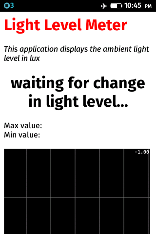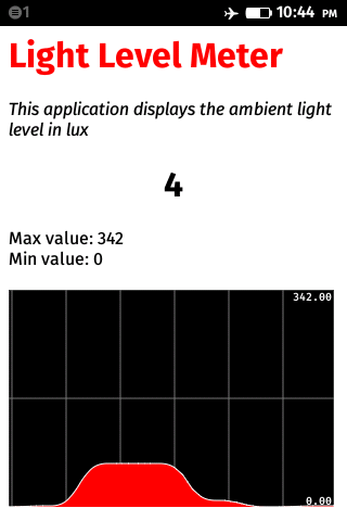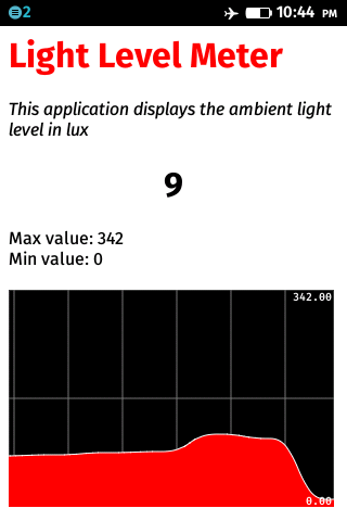 Displays the ambient light level in lux. Records the maximum and minimum values and plot the light level in real time