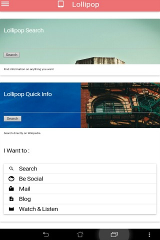 The fastest browser with material design. The browser is based on the latest Android Lollipop design. - Easily find anything with a single click - Find any information quickly from Wikipedia on homepage -Easily access Facebook, Twitter, Linkedin, Gmail, blogging sites and more. -Activity Based Search - Quickly go to the site based on the activity you want to do.