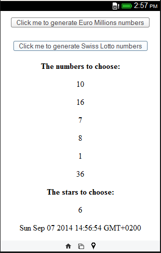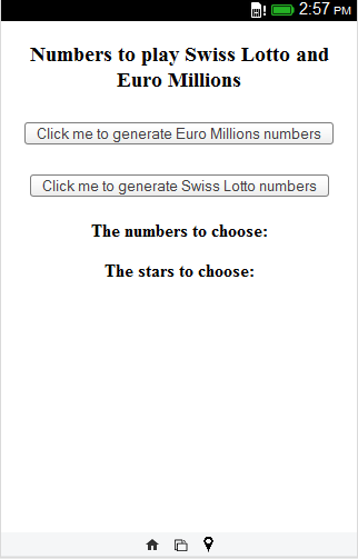 This App is a lightweight App that generates numbers for your SwissLotto play or EuroMillions Play. Have fun.