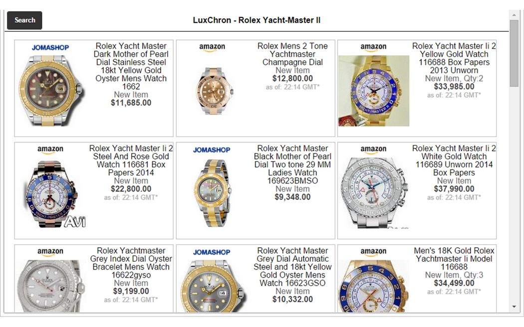 LuxChron Luxury Watch Finder App. Shop multiple sites for luxury brand watches. Inventory updates hourly.